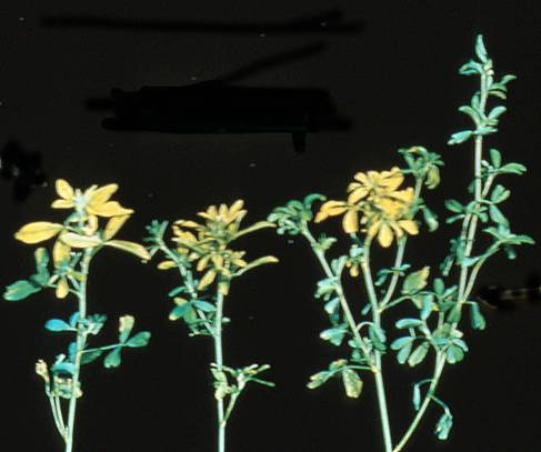 | Alfalfa | Death of terminal bud, rosetting, yellow top, little flowering and poor pod set. |