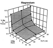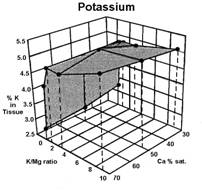 In each year since 1963, when our lab opened, we see examples of the effect of K on Mg uptake. This experience generally agrees with the examples presented here. While there is data that conflicts with the K:Mg ratio data presented here, our long experience with plant analysis leads us to conclude that