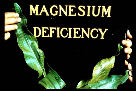 - High cation applications: High application rates of other cations, especially K, can reduce the uptake of Mg. This is most common on grasses, and corn seems to be the most sensitive grass.
